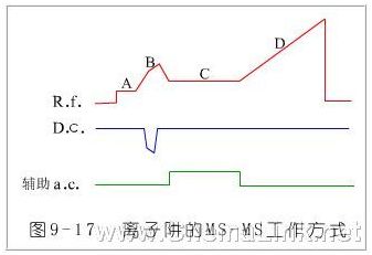 離子阱質譜儀的MS-MS屬于時間串聯型,它的操作方式見上圖,在A階段,打開電子門此時基礎電壓置于低質量的截止值,使所有的離子被阱集,然后利用輔助射頻電壓拋射掉所有高于被分析母離子的離子。進入B階段,增加基頻電壓,拋射掉所有低于被分析母離子的離子。以阱集即將碰撞活化的離子。在C階段,利用加在端電極上的輔助射頻電壓激發母離子,使其與阱內本底氣體碰撞,在D階段,掃描基頻電壓,拋射并接收所有CID過程形成的子離子,獲得子離子譜。以此類推,可以進行多級MS分析。由離子阱的工作原理可以知道,它的MS-MS功能主要是多級子離子譜,利用計算機處理軟件,還可以提供母離子譜,中性丟失譜和多反應監測(MRM)。