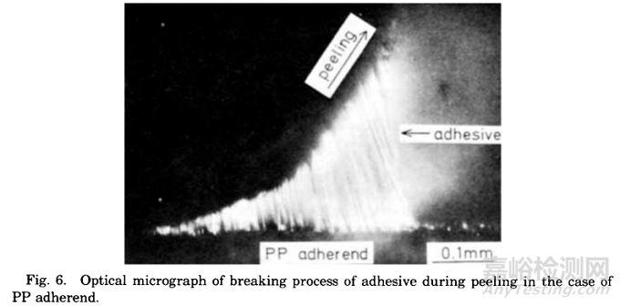 KINNOSUKE HINO等人也通過光學顯微鏡觀察了膠粘劑撕開時的狀態。從上圖中可以看到明顯的絲狀物,從宏觀角度也進一步地證實了關于粘附力產生的猜想。