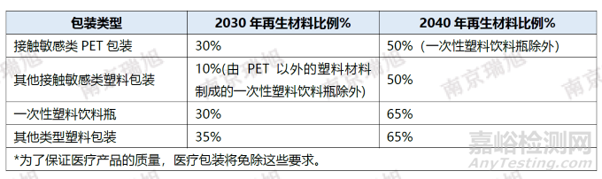 PPWR提案針對特定包裝類別,規定了強制性再生材料含量比例,相關要求自2030年1月1日起實施。