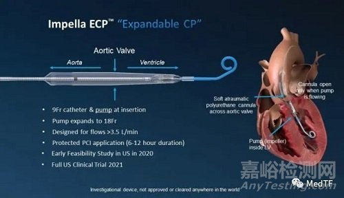 在2020年6月,Impella ECP獲得FDA批準進行早期可行性研究,該研究已經完成54名患者入組。該研究在去年公布21名患者臨床數據,Abiomed宣稱臨床效果優異。并在去年8月獲得FDA授予“突破性設備”稱號。
