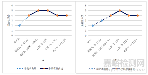 如圖 2A 所示,口服溶液劑在 0 歲新生兒至不滿 17 歲青少年年齡段內(nèi),適宜性表述為“4,適用性良好”和“5,最適宜和優(yōu)選劑型”。對照申報情況,在立項(xiàng)通過的 6 件口服溶液劑申請中,申報適應(yīng)證所涉及的最低起始年齡為 0 歲,最高起始年齡為 6 歲,基本符合給藥途徑/劑型與年齡的適宜性匹配關(guān)系。