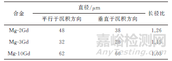 表1 電弧增材制造成形不同Mg-Gd合金的晶粒尺寸