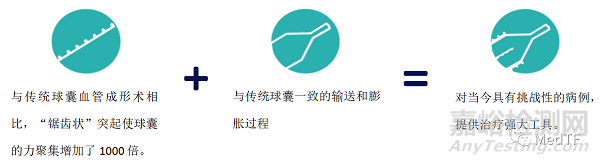 Serranator鋸齒狀設(shè)計給予血管壁的壓力是傳統(tǒng)球囊的1000倍