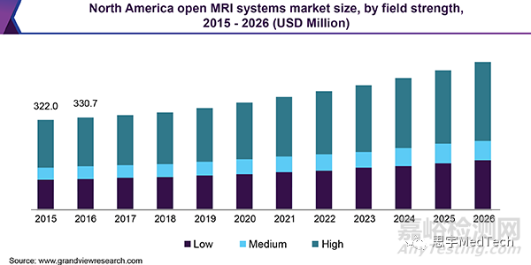 2018年,全球開放式MRI系統市場規模為9.06億美元,預計到2026年將以6.4%的復合年增長率增長。與年齡相關慢性病發病率的增長、生活方式的改變以及對安全和準確診斷方法的需求是推動整個市場增長的主要因素之一。例如,根據美國癌癥協會(American Cancer Society)的數據,2016年腦癌和脊髓癌約占美國所有癌癥的1.3%。對早期準確診斷工具的需求不斷增加,預計將對預測期內的市場增長產生積極影響。
