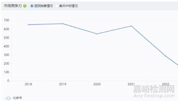 從醫院銷售情況看,從2018年到2022年分別為653、665、546、638、289億元,從集采中標情況看,從2018年到2022年分別為3.09、2.64、5.35、18.43、1.63億元。