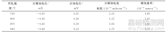 表1 不同終軋溫度下冷軋退火板的電化學腐蝕數據