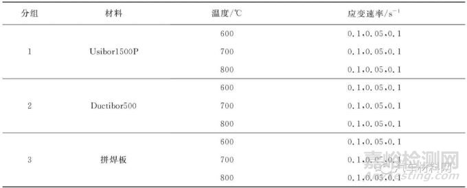 為了研究高強鋼激光拼焊板高溫條件下的流變力學行為,本實驗將在不同溫度條件下,采取不同的應變速率對樣件進行拉伸。同時,為了對比拼焊板與母材在高溫條件下流變特性的變化,分析拼焊板在高溫條件下的成形性能優(yōu)勢,兩種母材也將采取相同的方案進行試驗。