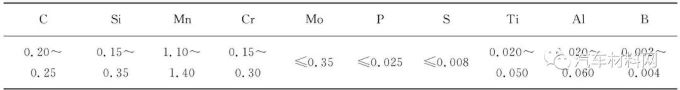 針對兩種不同高強鋼材料板料及激光焊接的拼焊板料,兩種材料分別為阿賽洛公司生產(chǎn)編號為Usibor1500P和Ductibor500的高強鋼,其化學成分分別見表1和表2。