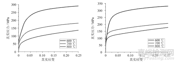 圖8 激光拼焊板在600,700,800 ℃條件下的真實應力-應變曲線
