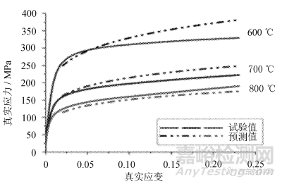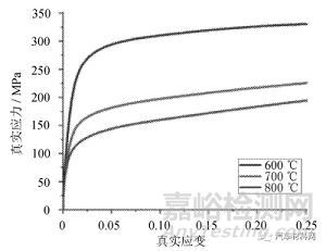 圖6 Usibor1500P高強鋼在600,700,800 ℃條件下的真實應力-應變曲線