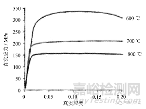 圖7 Ductibor500高強鋼在600,700,800 ℃條件下的真實應力-應變曲線
