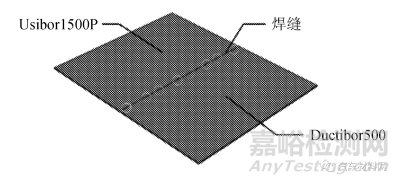 由兩塊尺寸為70 mm×110 mm的Usibor1500P和Ductibor500高強度鋼板“拼接”而成,板料初始厚度為1 mm。