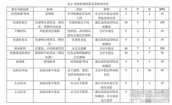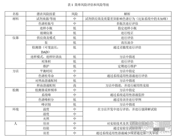 在分析方法轉移前,還應進行風險評估,確定可能影響的因素,并對風險進行評級,確定消除風險的方法。以HPLC為例: