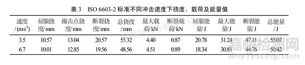 2.2 ISO 6603-2 標準不同沖擊速度條件下撓度、載荷及能量的變化