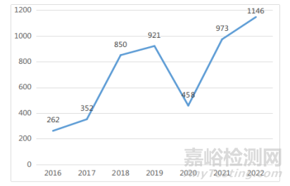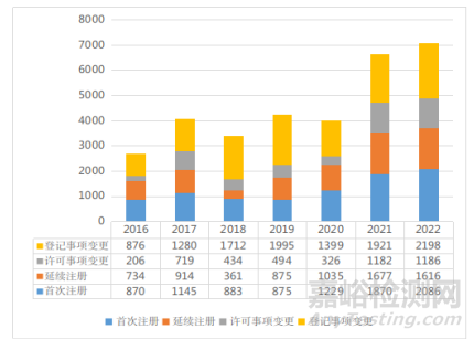圖3 2016至2022年度第二類醫(yī)療器械注冊數(shù)據(jù)圖