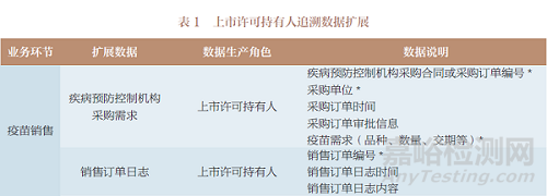 追溯數據按其產生主體(上市許可持有人和疾病預防控制機構)的業務場景進行擴展,表1~表3是追溯數據擴展的部分示例。
