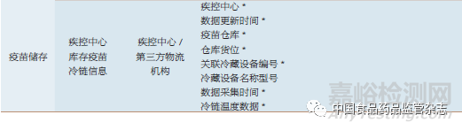 ①國產疫苗/進口疫苗基本信息數據子集:國家藥品標識碼、通用名稱、商用名、本位碼、劑型規格、包裝、有效期、批準文號、是否屬于國家免疫規劃疫苗、生產企業、上市許可持有人等。②生產企業/進口疫苗代理企業基本信息數據子集:境內疫苗生產企業(國產疫苗上市許可持有人)基本信息、境外疫苗生產企業基本信息、進口疫苗代理企業(進口疫苗上市許可持有人)基本信息。③疾病預防控制機構/接種單位基本信息數據子集:疾病預防控制機構/接種單位名稱、地址等。④疫苗配送單位(接收上市許可持有人或疾病預防控制機構委托進行疫苗倉儲和配送)基本信息數據子集:疫苗配送單位名稱、地址等。⑤藥品生產許可證/藥品經營許可證基本信息數據子集:許可證編號、統一社會信用代碼、企業名稱、注冊地址、法定代表人、企業負責人、有效期、發證機關等。