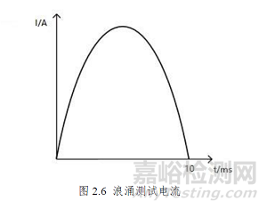 考慮到實際在使用SiC MOSFET時,一般會使用市電作為供電電源,而我國的市電為50Hz的交流電,因此,在本文的浪涌測試中選擇 10ms 脈寬的正弦半波作為浪涌電流,如圖2.6所示。