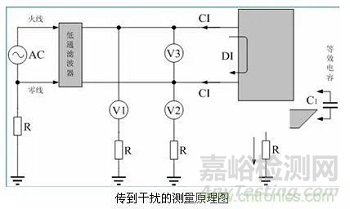 如圖所示,其中CI為共模干擾、DI為差模干擾、V1 = CI DI 、V2 = CI + DI 、V3 = DI ,R1、R2、R3、R4為接地電阻,C1為分布電容。