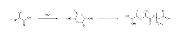 丙交酯是乳酸的環狀二聚體。在進行二步法聚合生產PLA時,將玉米、甘蔗、甘薯等淀粉質原料經微生物發酵制得乳酸后,使乳酸生成環狀二聚體的丙交酯,再開環縮聚生成PLA。目前二步法也是生產PLA較為成熟和主流的方法。