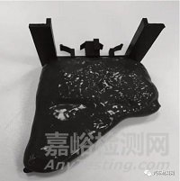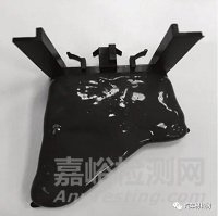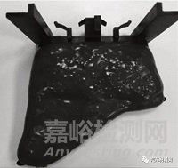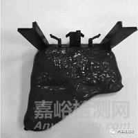 對發泡件進行135 ℃、130 ℃、125 ℃和120 ℃加熱,觀察在不同保溫時間下發泡件的膨脹狀態。膨脹程度低于或與臨界合格標準件相似的記為合格點,超過臨界合格標準件的記為不合格點,由此測量出發泡的門檻溫度,低于門檻溫度,無論發泡件保溫多長時間都不再膨脹。對發泡件進行不同溫度下的保溫,在130 ℃和125 ℃下保溫,發泡件均會發生膨脹,在120 ℃下保溫,經過360 min,發泡件膨脹程度仍低于臨界合格標準件,如圖8 所示。在130 ℃/70 min 條件下,發泡件已經發生劇烈膨脹,可以看出非常明顯的發泡,如圖9 所示。在125 ℃/150 min 條件下,發泡件膨脹程度雖然已經超過臨界合格標準件狀態,但是膨脹程度低于130 ℃/70 min,如圖10 所示。在實際生產中,不會出現車身在烤箱中滯留360 min 的情況,所以認為發泡件膨脹的門檻溫度為120 ℃。