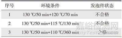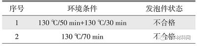 臺階溫度下,發泡件的溫度/時間與發泡件狀態具體數據見表2。