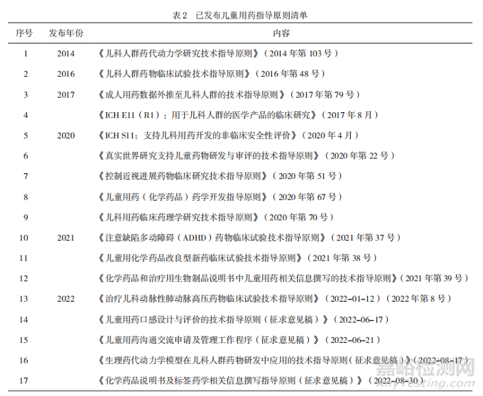 由于國家監管層面不遺余力地加大兒童用藥指導性法規的體系建設力度,截至2022年8月,藥審中心累計發布了17個兒童用藥相關指導原則,詳見表2。