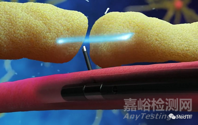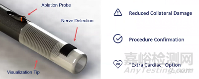 Corveus的消融針在需要對目標神經(jīng)進行消融時,可以從Corveus導管遠端伸出精準切斷神經(jīng),從而實現(xiàn)患者控制心衰。而遠端的神經(jīng)檢測裝置將幫助術者精準確定目標神經(jīng),以便射線精準消融,同時在消融后可以再次確認是否已經(jīng)完全切斷神經(jīng)。