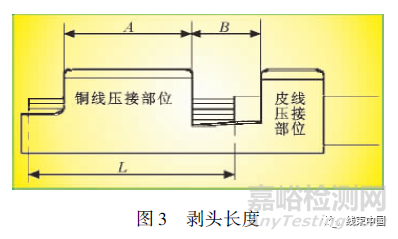 電線端部的剝頭長度的確定如圖3所示,單位為mm。