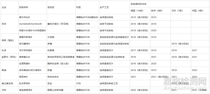表1近年來使用連續工藝生產的企業與獲批藥物