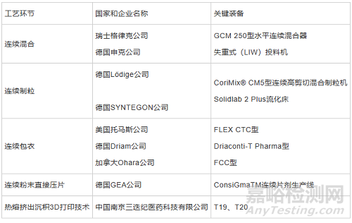表2固體制劑環節的新型連續制造裝備