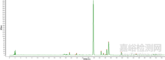 結果判定 供試品的提取離子流色譜中,應不得檢出與對照品溶液色譜相應的色譜峰。