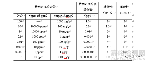 ▲ 表2-樣品中待測定成分的含量與精密度可接受范圍關(guān)系