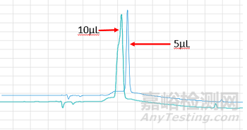 檢測(cè)A項(xiàng)目濕品時(shí)峰高只有四百多,進(jìn)樣量由原來(lái)的5μL進(jìn)10μL會(huì)有溶劑效應(yīng),出現(xiàn)裂峰。配樣方式為稱50mg樣品用20%乙腈稀釋到100ml。
