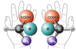 結構-性質:上述情形的一對對映異構體理化性質幾近相同,會具有相同的熔點、沸點、密度、pKa和溶解性質,兩者的旋光度大小相等,方向相反。