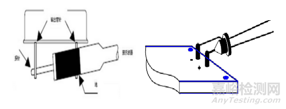 示波器探頭的地線長度約13cm,自身電感約為80nH,共模電流會(huì)在地線夾子上產(chǎn)生一定量不可忽略的尖峰電壓。在實(shí)際測試時(shí),地線夾通常會(huì)以環(huán)形出現(xiàn),所以很容易接收到空間輻射。測試端子和地線夾構(gòu)成的環(huán)路就像天線一樣在工作,地線環(huán)的面積越大,開關(guān)過程中獲取的噪聲就越大,影響到紋波的正確測試。為減小地線夾過長所造成的影響,探頭應(yīng)該直接靠在輸出管腳兩端,這樣信號(hào)和地相連處的地線環(huán)面積就很小了,這就是靠測法。測試時(shí)去掉示波器探頭的地線夾和探頭帽子,直接靠在輸出管腳上進(jìn)行測試,如果輸出管腳間距稍大,示波器探頭不能直接靠上,可以用自制地線環(huán)進(jìn)行測試,如下圖所示。