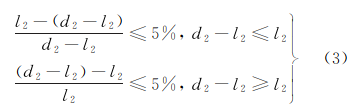 NADCAP審核指導建議中變量的設定:將豎直方向對角線的上半條和下半條長度分別設定為l1與d1-l1;將水平方向對角線的上半條和下半條長度分別設定為l2與d2-l2(見圖3)。