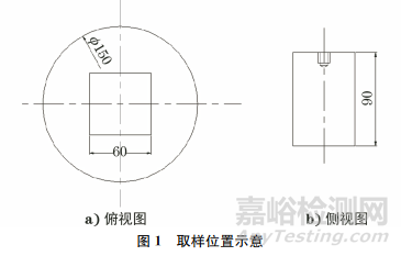 對圓坯夾雜物及其徑向分布規律進行研究,結果表明:越靠近圓坯中心位置,夾雜物的平均尺寸越大。因此,主要研究圓坯心部夾雜物的特征,在圓坯幾何中心處取規格為60mm×60mm×90mm(長×寬×高)的長方體試樣,用大樣電解法對其進行分析,研究37Mn5鋼中非金屬夾雜物的來源,取樣位置如圖1所示。