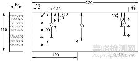 該試塊兩端共鉆有13個Φ3 mm、深為40 mm的平底孔,主要用于60 kg/m軌焊縫探傷雙斜探頭K型或串列式探傷靈敏度的校準。
