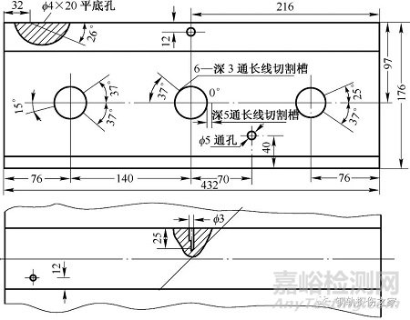②螺孔上線切割槽是檢驗0°和37°探頭的探測性能。