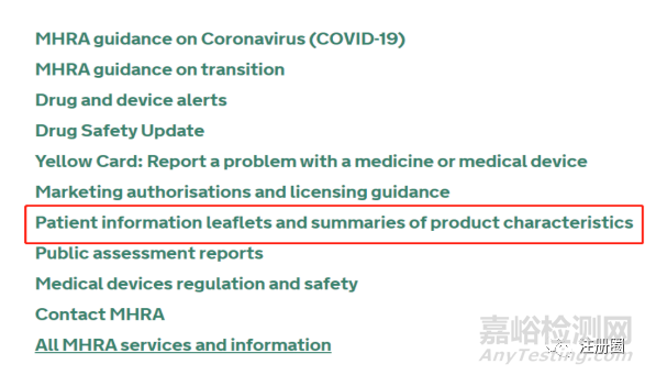 Medicines項下→Search→輸入活性成分英文名,進行搜索;檢索結果較多,可通過左邊相關信息篩選;說明書在Product information,審評報告在Assessment history。 |