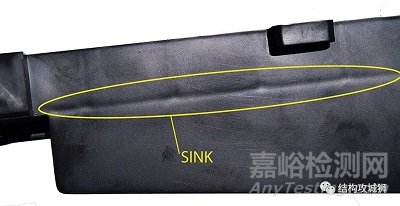 下圖是注塑件表面產生縮痕的照片。縮痕是由另一側的加強筋骨形成的。為了解決這些問題,肋通常相對于主壁變薄。較薄的筋骨將減少“A”處的體積,從而減少那里的局部收縮。由于這是一個收縮問題,邏輯是給定聚合物的收縮特性越高,加強筋應該越薄。