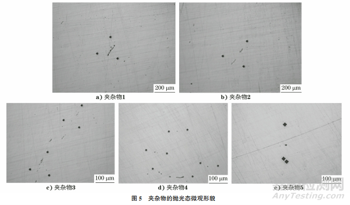 采用SEM對非金屬夾雜物進行觀察,結果如圖3所示。