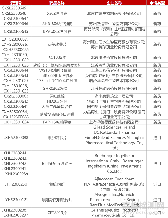 1. CDE新藥受理情況(09月23日)