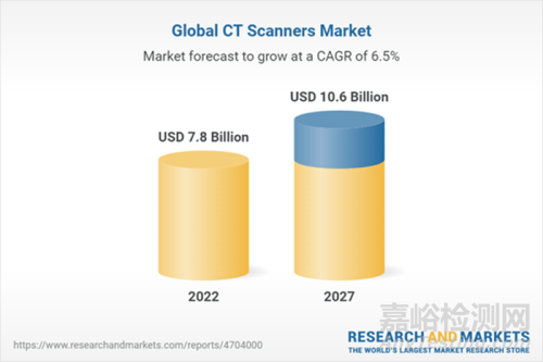 全球知名市場調研機構Research And Markets發布“2022年計算機斷層掃描儀(CT)設備和全球市場報告”,顯示:2022年全球CT市場規模為78億美元,預計2027年將增長至100.6億美元,年復合增長率(CAGR)為6.5%。隨著技術的進步,全球CT市場預期在心臟掃描、肺部篩查和兒科疾病檢查等功能運用方面持續突破,預計到2029年市場規模將超過135億美元。