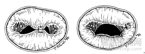 二尖瓣緣對緣修復技術(edge-to-edge repair)在1991年由意大利學者Alfier提出,該技術是指將二尖瓣進行緣對緣縫合,從而使二尖瓣雙孔化(A2/P2區)或者關閉A1/P1或A3/P3區對合緣達到治療反流的目的(見圖1、圖2)。而二尖瓣夾合器系統則是基于外科二尖瓣緣對緣修復技術,利用機械夾合的原理,通過經導管介入手術植入人體后,二尖瓣夾合器的上夾、下夾夾持住二尖瓣瓣葉,成“V”形的上下夾兩臂向中線靠攏,同時帶動所夾合的組織向中線靠攏,收入閉合環后即鎖定,然后釋放夾合器。植入二尖瓣夾合器后,可減少二尖瓣的反流,達到治療反流的效果。