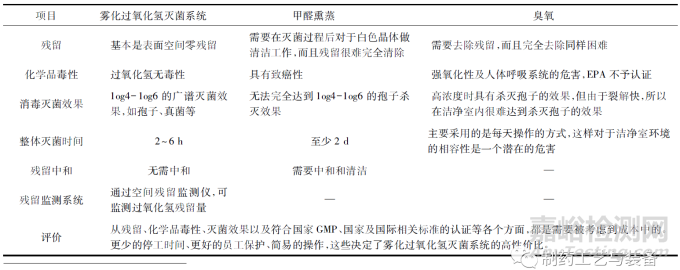 表1 過氧化氫干霧滅菌與其他氣霧滅菌技術的比較