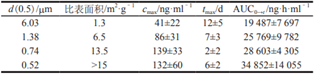 表1 帕利哌酮的顆粒大小及其肌注后在beagle犬體內相應的藥動學參數[3]