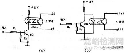 A圖是常見的常開電路,也就是說輸出平時(shí)是關(guān)閉的,只有當(dāng)輸入端出現(xiàn)高電平信號(hào),三極管BG導(dǎo)通,12V電源通過分壓電阻--發(fā)射管--BG--地形成回路,發(fā)射管發(fā)光,接收管(輸出)導(dǎo)通。