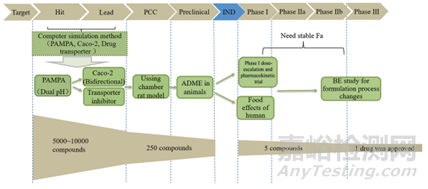 圖2.新藥發(fā)現(xiàn)和開發(fā)不同階段的體外滲透性模型。PCC:臨床前候選化合物;IND:研究性新藥申請(qǐng);ADME:吸收、分布、代謝和消除;PK:藥代動(dòng)力學(xué);BE:生物等效性(來源于參考文獻(xiàn)3)